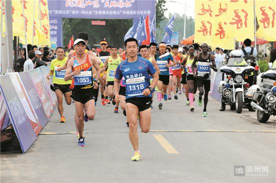 2018年“跑游山东”邹平·码头站“沿着黄河去码头”半程国际马拉松赛。(资料片)