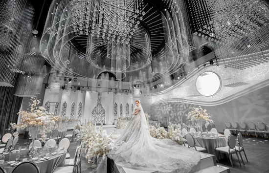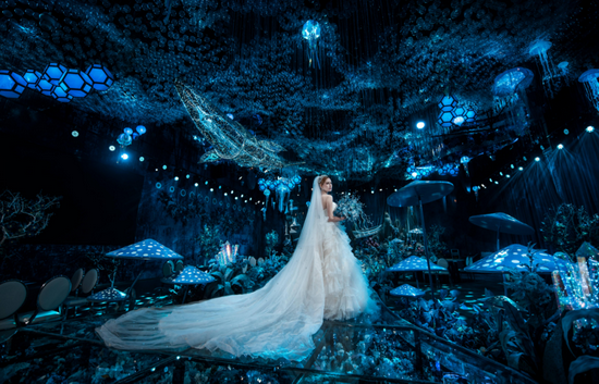据介绍,莱喜莉艺术宴会中心,是由中国婚礼堂影响力设计师贾永厚老师带领厚空间美学设计团队精心设计打造,将科技产品、智能光影、互动空间以及婚礼文化进行了完美融合。莱喜莉艺术宴会中心位于高新区鲁商福瑞达广场,配合6个全场无柱的主题宴会厅以及配套序厅与公主楼梯,含1个多功能宴会厅,是山东目前最具沉浸体验感的婚礼堂。