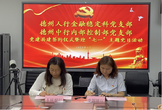 德州中行内部控制部与人行金融稳定科举办党建共建签约仪式暨迎“七一”主题党日活动