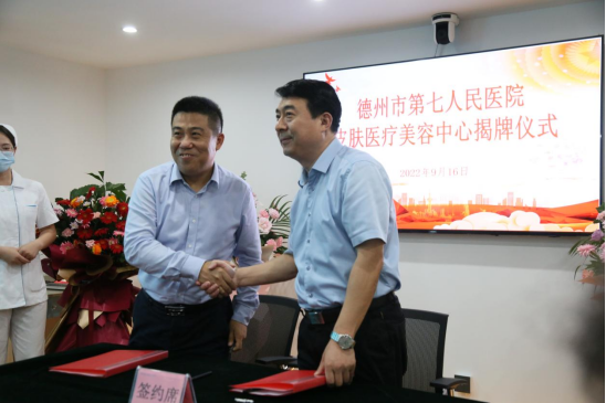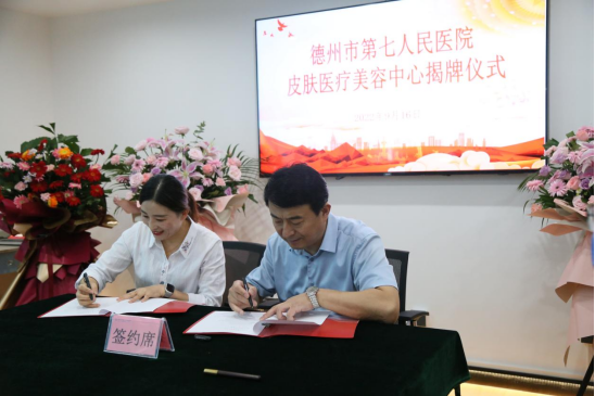 揭牌仪式之前,德州市第七人民医院与山东第一医科大学附属皮肤病医院暨山东省皮肤病性病防治研究所共同签署山东省皮肤性病学专科联盟成员单位协议;与北京医疗整形美容业协会签署北京医疗整形美容业协会专家会诊中心协议。