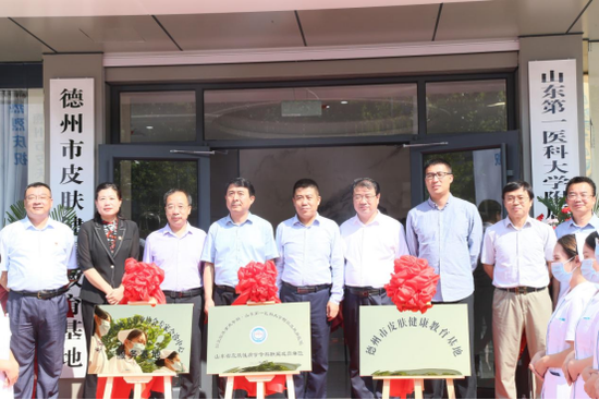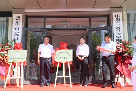 活动中,山东第一医科大学附属皮肤病医院暨山东省皮肤病性病防治研究所副所长刘健、德州市卫健委副主任孔祥勇共同为“山东省皮肤性病学专科联盟成员单位”揭牌;德州市卫健委副主任孔祥勇、德州市第七人民医院党委书记翟学军共同为“德州市皮肤病健康教育基地”揭牌;北京医疗整形美容业协会专家代表王蒙、德州市第七人民医院党委书记翟学军共同为“北京医疗整形美容业协会专家会诊中心服务基地”揭牌。