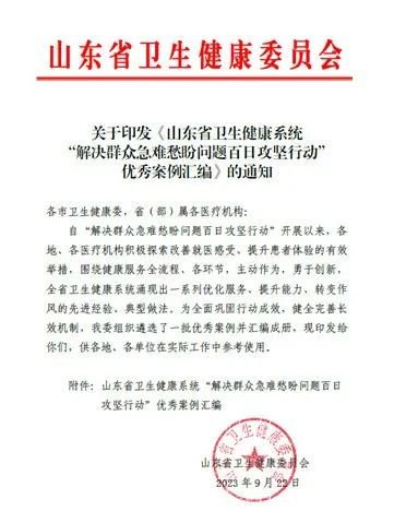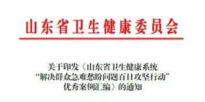 德州市第二人民医院入选全省“解决群众急难愁盼问题百日攻坚行动”优秀案例