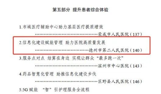 德州市第二人民医院《信息化建设赋能管理 助力医院高质量发展》,成功入选山东省卫生健康委《山东省卫生健康系统“解决群众急难愁盼问题百日攻坚行动”优秀案例汇编》。