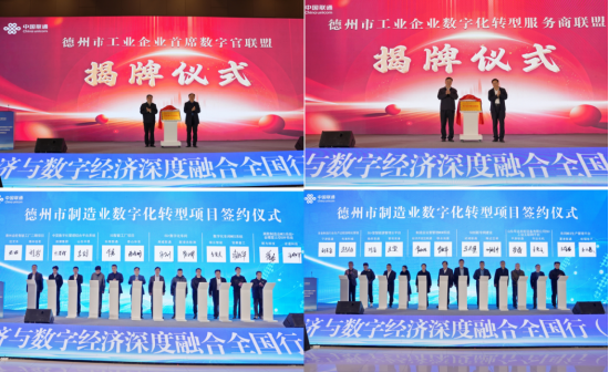 会议现场隆重举行了首席顾问聘任、数据官联盟成立以及数字化转型项目签约仪式,并发布了德州市首批制造业企业数字化转型需求清单、解决方案及专属金融服务产品,为包括德州联通在内的各行业搭建了共同探索数字经济未来的沟通桥梁。德州联通将以主办此次会议为契机,积极携手产业链上下游企业,充分发挥公司业务优势,助力数字经济蓬勃发展。