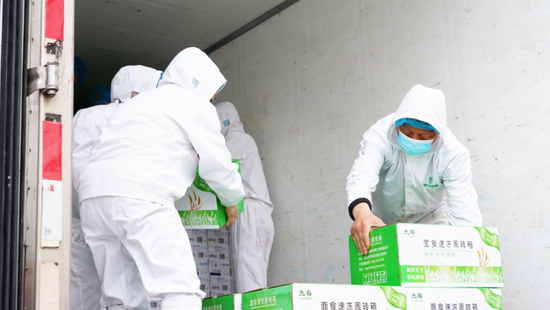 4月2日,第一辆满载爱心物资,满载惠民早餐深情厚谊的驰援货车,出发赶赴上海。此后,4月4日、6日分别又有三批配送车辆满载惠民早餐自产的速烹菜以及馅饼、锅贴、包子等面食产品和新鲜蔬菜、米面粮油等民生物资驰援上海。