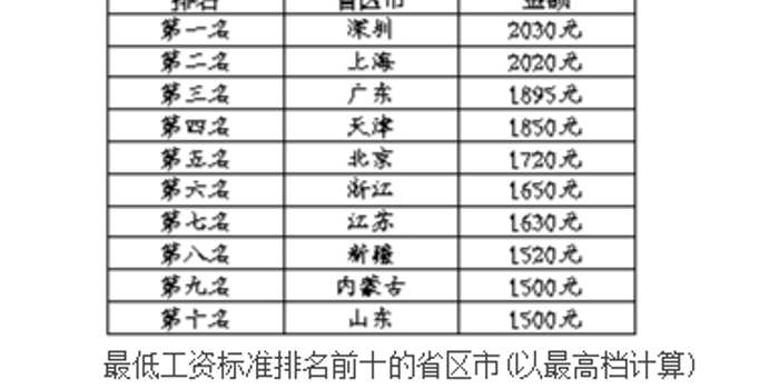 从4月1日起,上海劳动者月最低工资标准将从目前的1820元调整为2020元,位列全国最低工资标准首位。这已经是上海第22次提高最低工资标准。与此同时,广东月最低工资标准最高档调至1895元位列第二;天津月最低工资标准调至1850元位列第三;北京月最低工资标准从1560元调整至1720元位列第四。