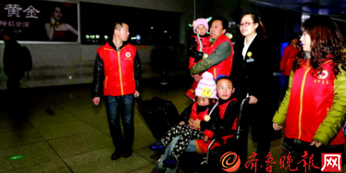 10日凌晨零时41分,来自青海牧区的夏苍更群一家的5个孩子离开Z274次列车,即将开始在济南的检查治疗。到站后,早已等候在站台的济南站工作人员和志愿者们上前接过几个孩子,小心安放在轮椅上。几个孩子并没有因为深夜的缘故而哭闹,反而显得很精神。一个孩子对着餐车阿姨笑着称她阿妈“,阿妈”说“,好孩子,祝你们早日康复,回去的时候我还给你们做好吃的!”这5个孩子出生在青海果洛州班玛县亚尔堂乡的一个藏族家庭。5人中,已经有3个孩子被确诊为成骨不全症,也就是俗称的“瓷娃娃”症。
