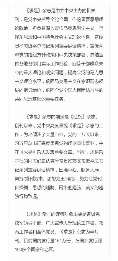 有一本杂志,以“刊发好领导同志的文章”为重要责任。有一本杂志,作者队伍中,领导干部云集,刊发的文章若以篇目论,省部级以上领导干部的文章占40%以上。这本杂志,就是中国共产党中央委员会机关刊《求是》。