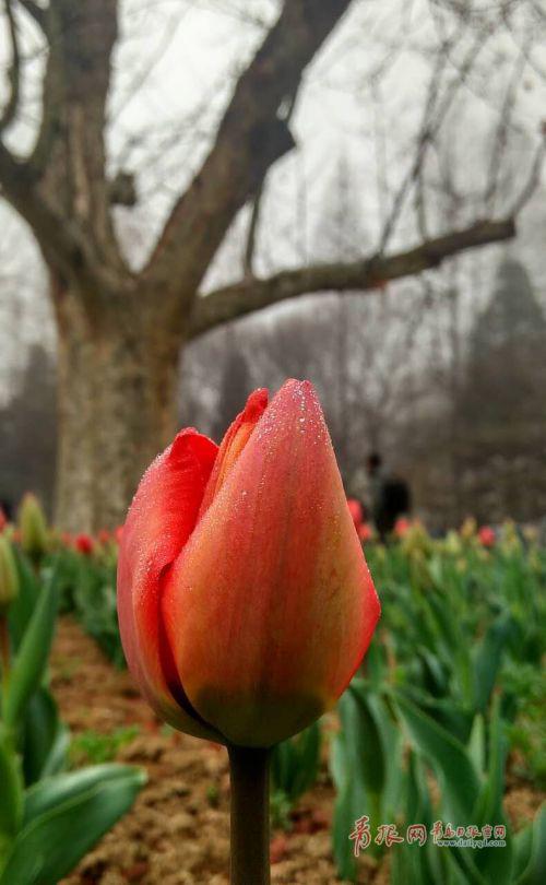尽管近日青岛前海薄雾升腾,气温转低,但中山公园樱花已于4月5日悄然初开,预计今日起进入盛花期。园内的“花魁”郁金香高贵雍容,目前也已大面积开放,红、黄、白、金各色花朵格外惹人喜爱。市民游客周末可走出家门游园赏花,感受春的气息。(青岛观签约摄影师董志刚)