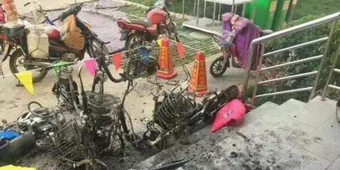 24日,记者来到关先生所在的东来尚城A6号楼。在A6号单元楼下大厅外,摆放着六辆已经烧得面目全非的电动车,电瓶早已不见,只剩下黑漆漆的铁架子。在一楼大厅内,现场正被封锁保护,大厅内一片漆黑,还停放着多辆电动车,大厅单元楼墙砖已经被烧坏并脱落,瓷砖碎了一地。