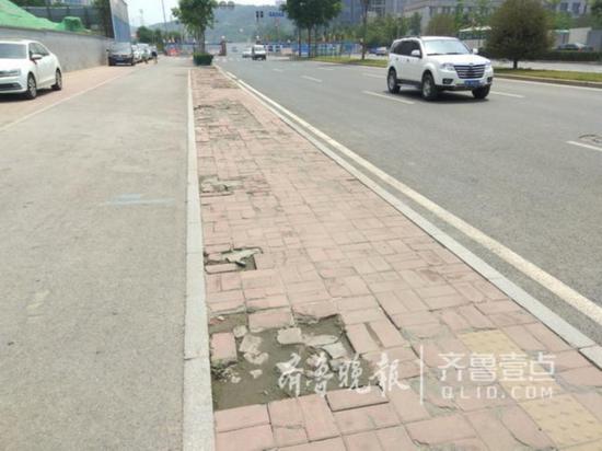 不仅解放东路、奥体西路、奥体中路等出现道路花砖破损情况,华信路、华龙路、泺源大街也出现道路花砖破损情况。