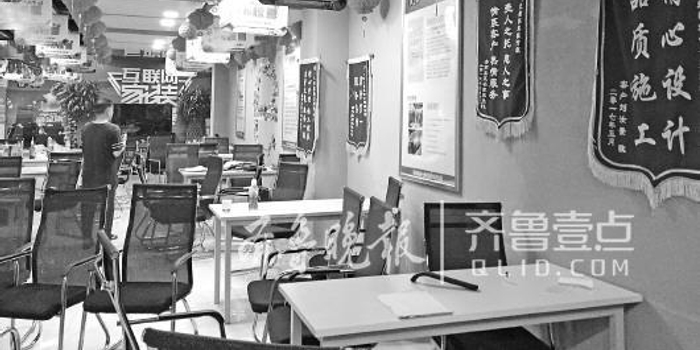 面对公司空荡荡的大厅,济南市民李先生仍记得当初天猫家装e站济南店刚在北园大街262号新址开业时的热闹情景,公司一片繁华喧闹,推销人员不停地打着电话拉拢客户,接待室坐满了前来咨询的业主,设计师的办公室里也是人满为患。“那时候应该是2月,我们来得比较早。”李先生怎么也没想到,短短不到半年的时间,公司就人去楼空了。
