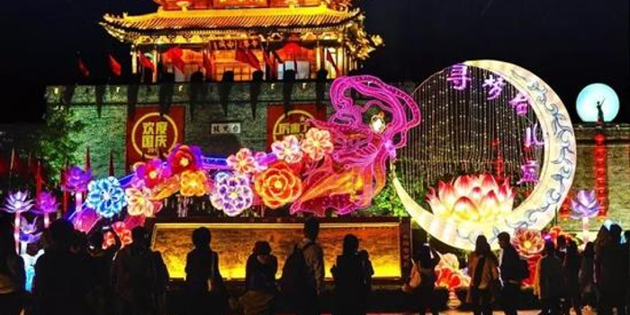 游人在美轮美奂的运河古城赏明月、享美景、共团圆、迎中秋。在台儿庄古城西门城墙上,高挂着一个直径5米的超级人造月亮,嫦娥在优美的背景音中,时而在月亮中翩翩起舞,时而轻挥衣袖奏起古筝,呈现出天上一个月亮,凡间一个月亮的唯美景观。“嫦娥仙子”摇曳的的身姿映射在幕布之上,与空中明月相互辉映,如梦如幻,分不清天上人间。呈现一番“人在月中舞,曲在空中鸣”的唯美景象。