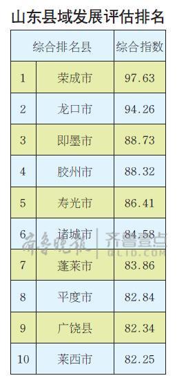 山东县市发展前十名 九个在胶东 你家上榜了吗