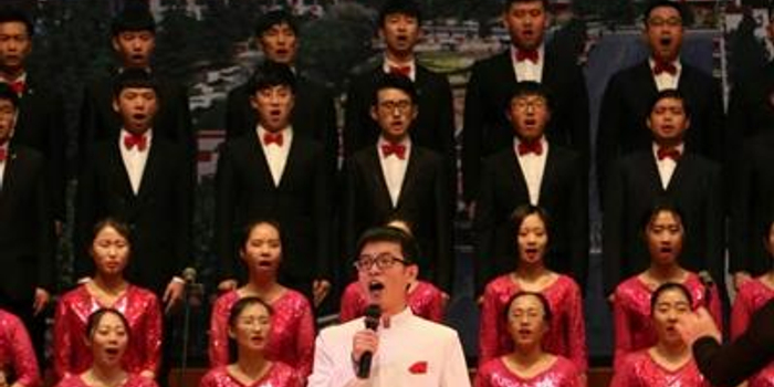 在一次团体合唱演出中,李国栋演唱歌曲。