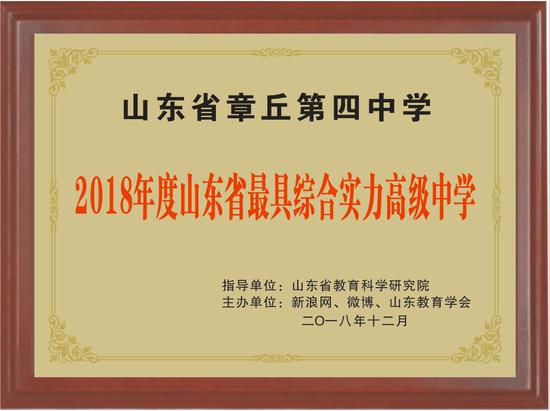 山东省章丘第四中学荣获“2018年度山东省最具综合实力高级中学”