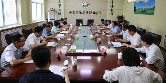 6月3日,潍坊市副市长陈端梅、市政府办公室副主任贾宝文、市教育局党组书记、局长杜全平等来校调研,潍坊市有关部门负责同志陪同。山东畜牧兽医职业学院党委书记郑立森,副校长周其虎、李志奎、王金诺出席座谈会。