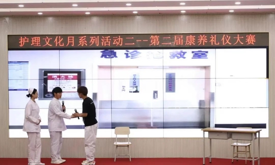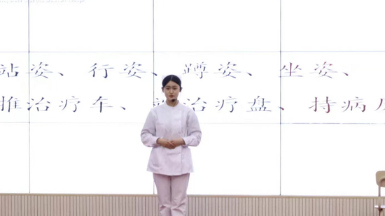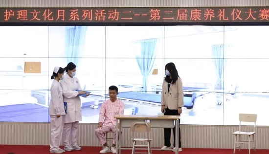 在本次大赛中,各参赛选手将从站姿、行姿、蹲姿、坐姿、推治疗车、端治疗盘、持病例夹以及结合情景剧的方式对护理礼仪进行了生动的诠释。
