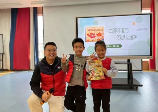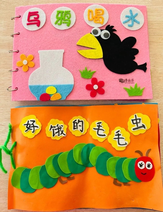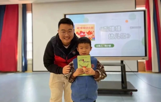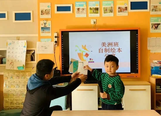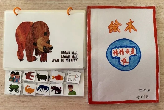 “自制绘本”,孩子们可兴奋了!他们按小组投票选出自己最喜欢的绘本,先在班内进行分享,再跨班在级部里巡回报告,小家伙们牵着老师推进