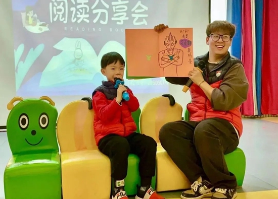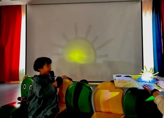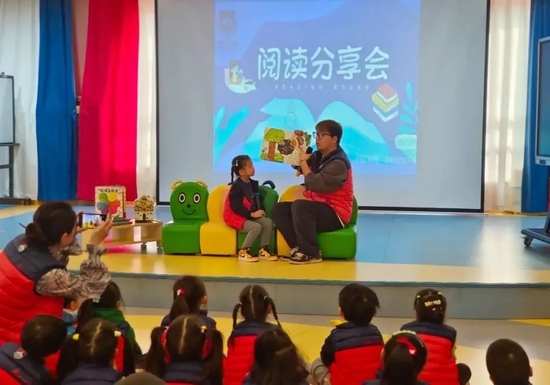 大班级部的阅读分享,以茶话会的形式展开。两个班结对子,由小朋友轮流自主分享喜欢的绘本。这种交互式的学习模式,更容易激发孩子们的表现!