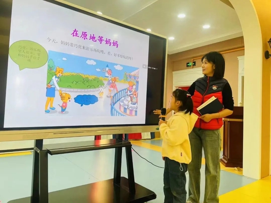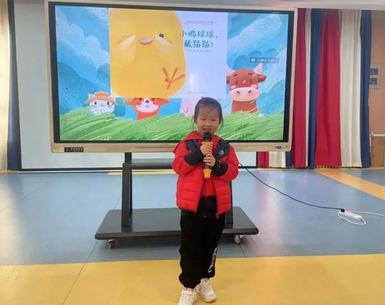 剑桥班康康小朋友带来的《躲猫猫幼儿园》。他在讲述中加入了自己的理解,绘声绘色中,完全没注意到自己鼻涕快流下来了,孩子们被双重快乐吸引着