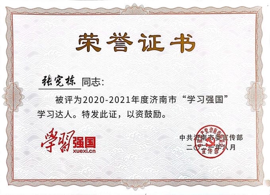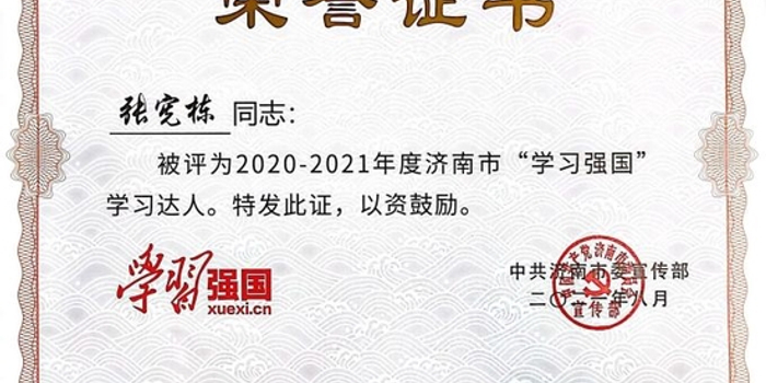 济南舜耕中学张宪栋被评为2022年度济南市“学习强国”学习达人