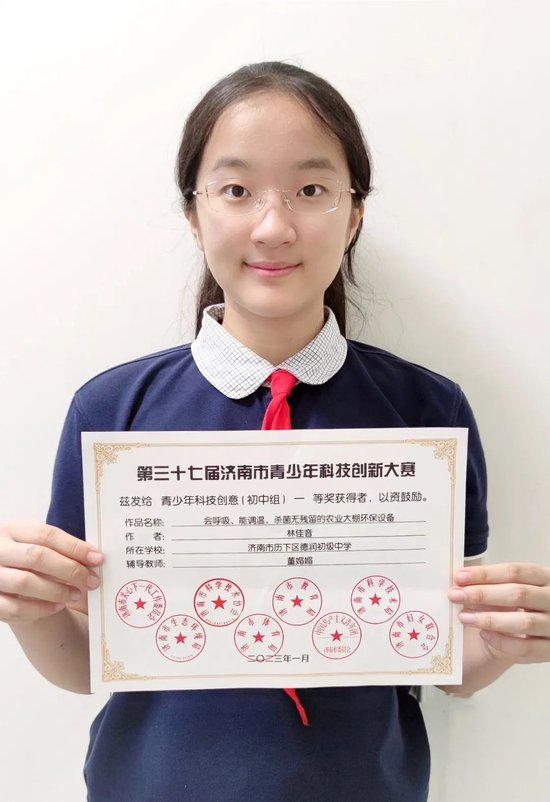 山东省实验中学德润校区2022级2中队队员林佳音荣获济南市“红领巾奖章”个人三星章