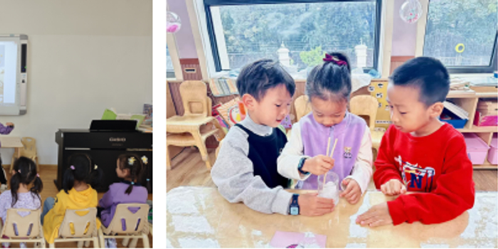 “一叶知霜降,一雨感秋深”。教师通过多种形式的趣味活动,引导孩子们认识霜降节气的特点,帮助孩子们初步了解节气与天气、农事的关系。“霜”是如何形成的呢?带着疑惑,孩子们尝试制作“霜花”,感受科学的神奇与创意。