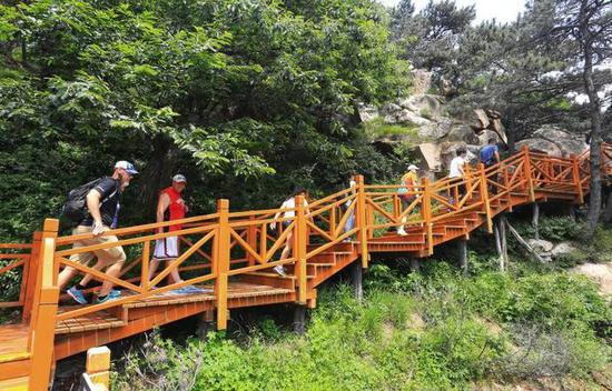 当然,听到这个消息的第一时间,记者就按捺不住脚步,踏入沂山亲身体验这个传说中新的“空气原产地”。果不其然,与长期待在车水马龙、工业污染较严重的城市里的“白领”们一样,初来沂山,这大地清新、空气纯净的小地方确实让人印象深刻。择幽静小径徒步上山,脚踩在松软的泥土上,一阵惬意涌上心头。登上玉皇顶,放眼望去,林荫遮日,满眼翠绿,心旷神怡,蓝天、白云、青山、绿水... ...仿佛把整个夏天的燥热都洗净了,剩下的全部都是清爽洁净。