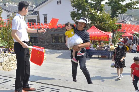 国庆黄金周期间,沂蒙山银座天蒙旅游区准备了一万面国旗,免费向游客发放,让游客手持国旗去旅游,争当国旗手,融入到景区“中国红”的喜庆色彩中。
