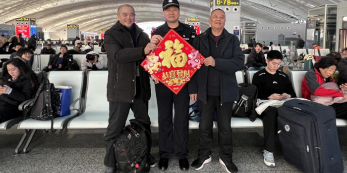 关注春运大幕开启,返乡客流日渐增多。为让广大旅客在旅途之中感受浓浓年味与公安温情,近日,济南铁路公安局济南公安处济南东站派出所民警走进车站候车室,开展“迎新春、送福字、保平安”主题活动,将新春祝福与安全提示送到旅客身边。