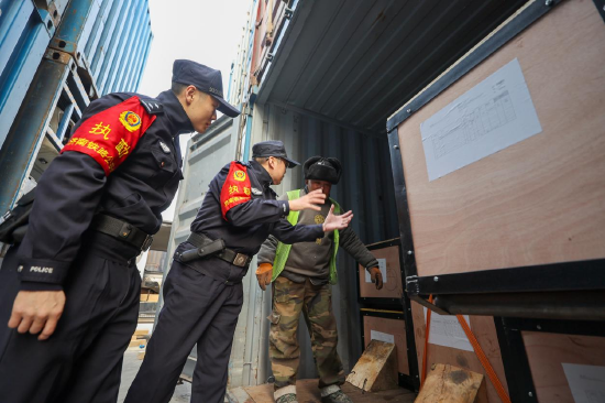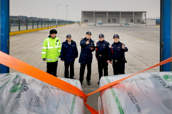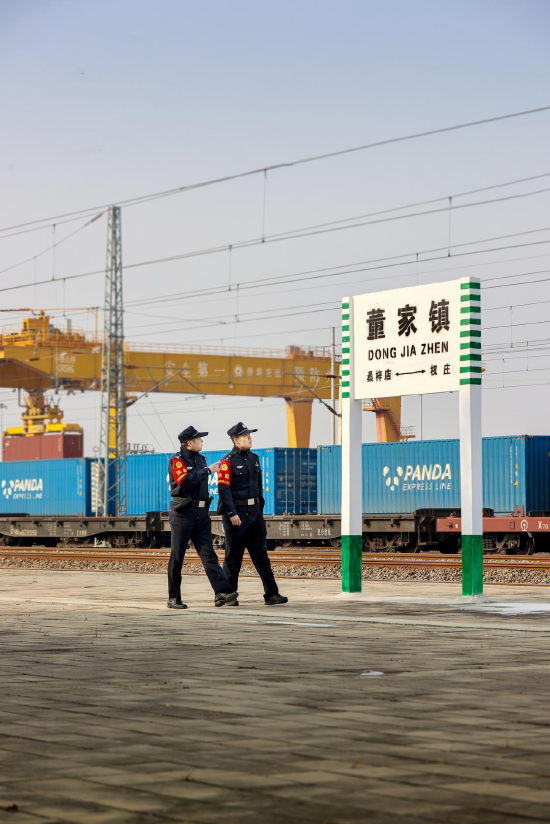董家镇站警务区辖区线路绵延近60公里,园区内单位多、车辆杂、人流密,安全监管责任重大。他的工作,从不止于例行巡逻。在中欧班列编组发车前,刘虎总会提前到场与海关、铁路货运、外运公司等部门协同作业,开展联合安全检查。从货物验视、隐患排查,到集装箱加固、车辆人员核对,他严格按照流程,不放过任何一个角落。“每一趟班列我都要到现场查一遍,心里才踏实。”这句话,他常挂在嘴边。