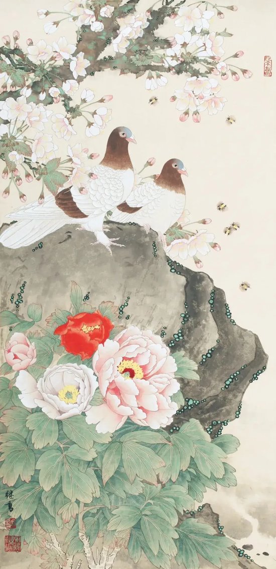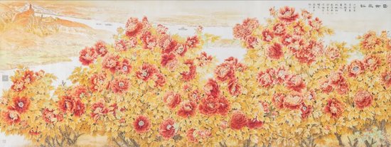 作为省级非物质文化遗产的巨野工笔牡丹画,此次带来27件优秀作品,成为展览的一大特色。其中《盛世中华》《凤穿牡丹》等集体创作作品,以恢宏篇幅、细腻笔触和绚丽色彩,将牡丹的雍容华贵展现得淋漓尽致,彰显 “中国工笔画之乡”的深厚积淀。巨野作为“中国农民绘画之乡”“中国工笔画之乡”,已建成全国最大工笔牡丹画创作基地,从业人员达2.5万人,年创作作品150万幅,市场占有率超80%,2025年产业产值达45亿元,走出了一条“农民变画师、画笔促增收”的文化赋能乡村振兴新路,此次展出的作品也集中展现了巨野工笔牡丹画的产业发展成果与艺术魅力。