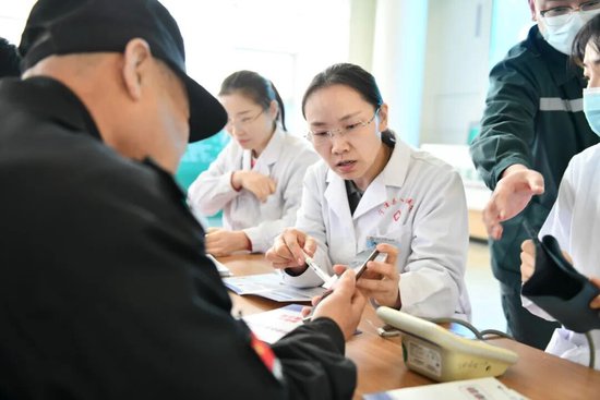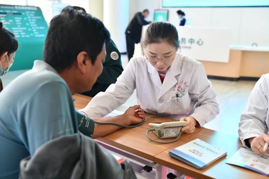 活动现场,医护人员为居民免费测量血压,帮助居民特别是中老年人,清晰了解自身基础健康指标,并针对测量结果异常、有用药困惑的居民,提供了专业的诊断建议和个性化的治疗方案调整指导。