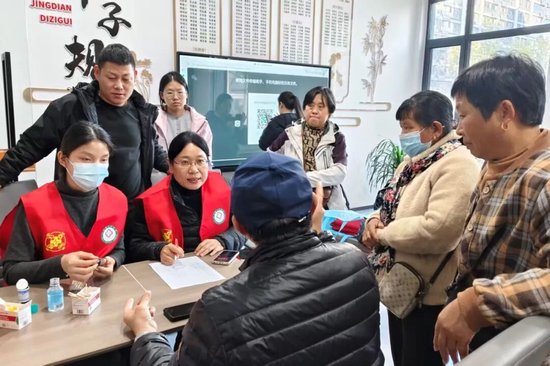 在现场血糖监测专区,护士赵倩倩为居民提供免费血糖检测服务。当检测到张阿姨的血糖值高达26.2mmol/L 时,在场居民均感到震惊,张阿姨也出现紧张焦虑情绪。刘建国主任立即上前详细询问其饮食、作息及用药情况,现场制定初步饮食调整方案,告知高血糖的急性风险,建议尽快到院检测糖化血红蛋白(HbA1c)以评估近期血糖控制情况,并反复叮嘱其严格控糖、规律作息。这一突发案例让居民直观感受到糖尿病的隐匿性与严重性,进一步强化了健康防护意识。
