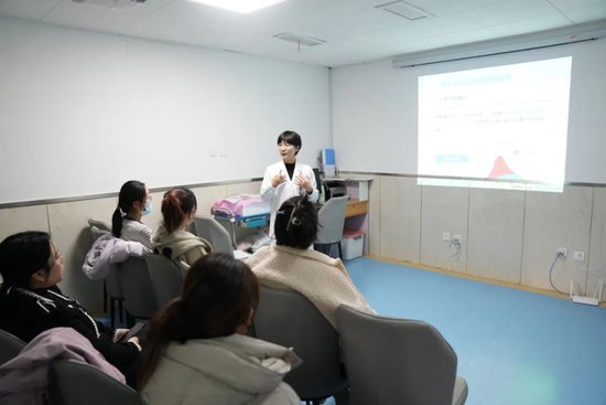 活动二:在孕妇学校,专家团队为孕妇及家属们进行了妊娠期高血糖知识讲座,详细讲解了妊娠期高血糖的病因、对母婴的危害以及营养治疗、饮食管理、运动及血糖监测等方面的注意事项。通过生动的案例分析和互动问答环节,让孕妇及家属们对妊娠期高血糖有了更深入的了解,增强了他们自我管理和预防的意识。