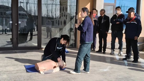 我院胸痛中心医护人员采用实操演示的模式,从急救黄金时间、操作流程到注意事项逐一拆解,手把手指导职工掌握胸外按压、人工呼吸等关键技巧,让大家在模拟场景中熟悉急救流程。