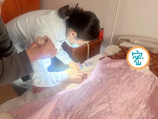出院十余天后,张阿姨的女儿通过平台顺利下单,次日,徐莹便携带无菌护理包、采血用品等专业物资如约上门。护理过程中,她严格遵循院感防控规范,从局部皮肤消毒、管路更换到静脉采血,每一个步骤都精准细致,同时时刻关注张阿姨的身体反应与情绪状态;操作结束后,徐莹还针对管路日常维护技巧、异常情况识别与处理等关键要点,向家属进行了耐心细致的床旁指导。