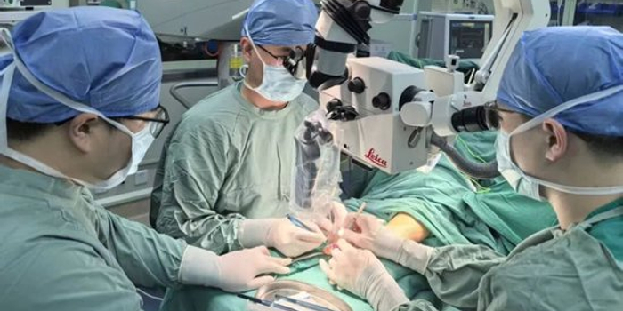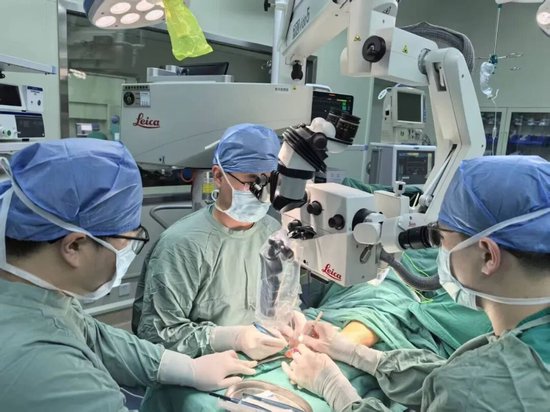 手足创伤与显微外科团队立即启动应急流程。苏娜护士长协调PICC小组于彦芳护士,为患者置入中心静脉导管,建立输液通道,为手术做好准备。黄乐乐主任与李振兴医生随即开展手术。断指再植属于显微外科的高难度手术,必须在显微镜下精准吻合细如发丝的血管与神经。术中,他们在显微镜下精细操作,成功为离断的环指吻合血管与神经,恢复了其血供;同时对受损的示指进行了VSD负压吸引及动脉吻合术,有效控制了创面。整个手术过程紧张有序,历时约七小时。术后,经过医护团队的细致照料,患者左手恢复良好。