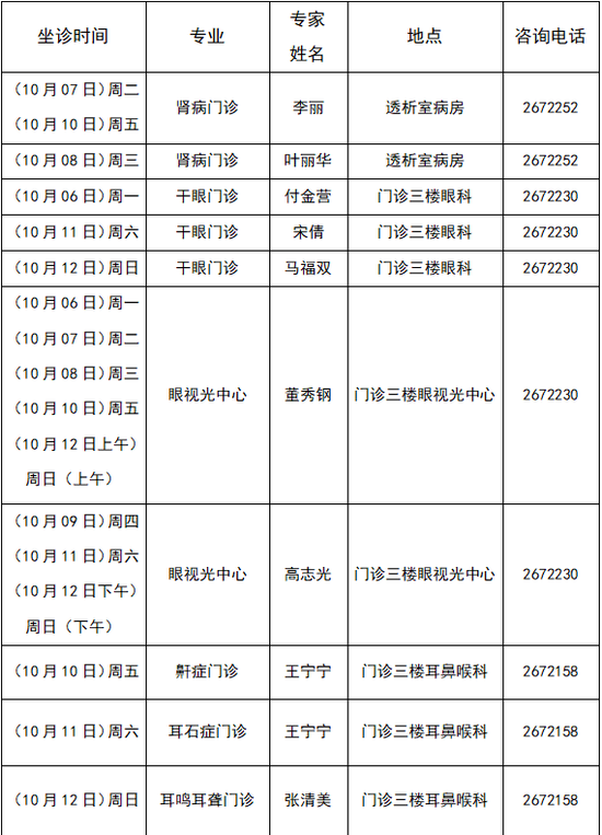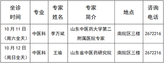 (2025年10月12日 周日全天坐诊 地点:南院区三楼国医堂)