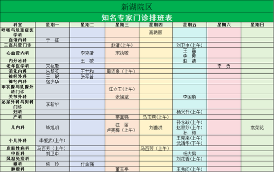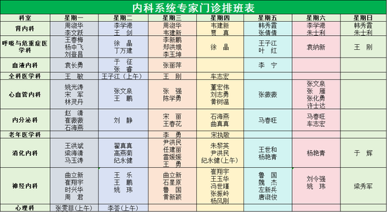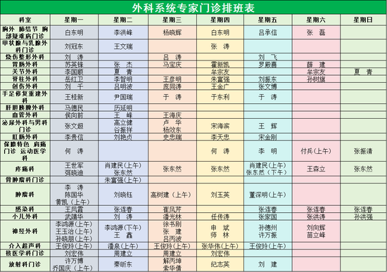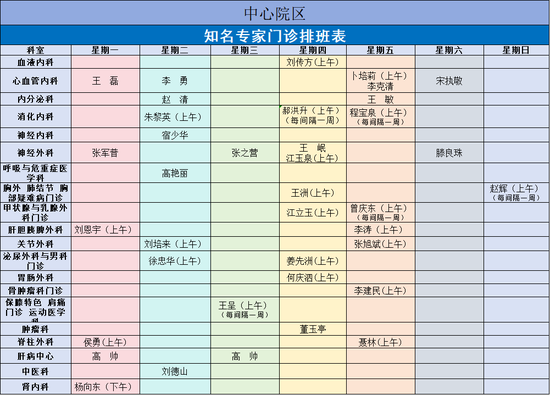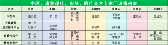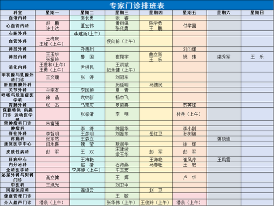 ★说明:如果专家出诊时间有变,以当天实际出诊专家为准。
