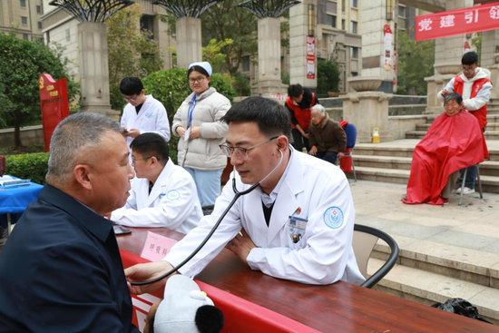 关注岁岁重阳,今又重阳。为积极响应“弘扬孝亲敬老美德 共建老年友好社会”的号召,切实结合全市卫生健康工作实际,让社区居民在家门口就能享受到优质医疗服务,10月28日,德州市第七人民医院党委委员邓小彬带队,携眼科、呼吸科、老年医学科等骨干医疗团队,走进鲁班御景国际小区开展义诊便民服务活动,鲜红的“重阳敬老送健康”横幅在活动现场格外醒目,将优质医疗资源送到居民家门口,以实际行动传承孝亲敬老美德,助力平安健康社区建设。
