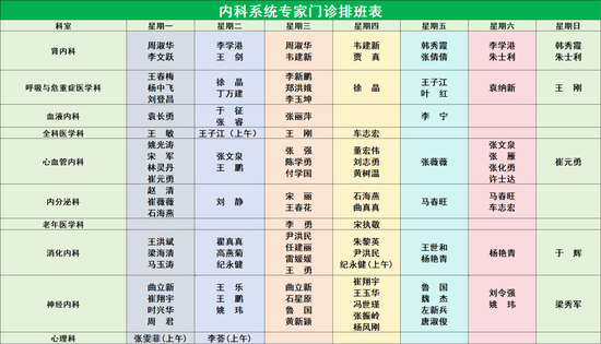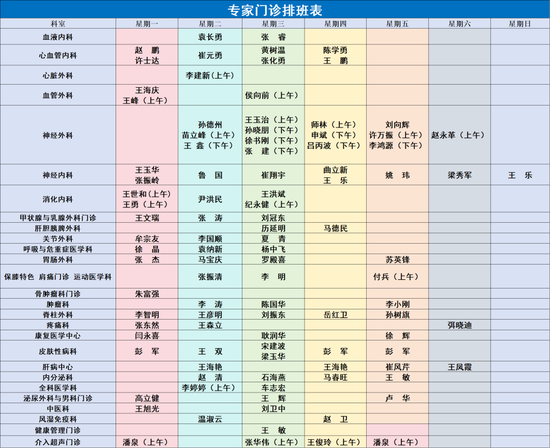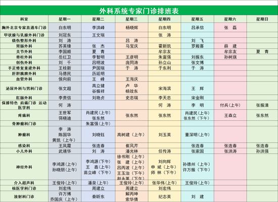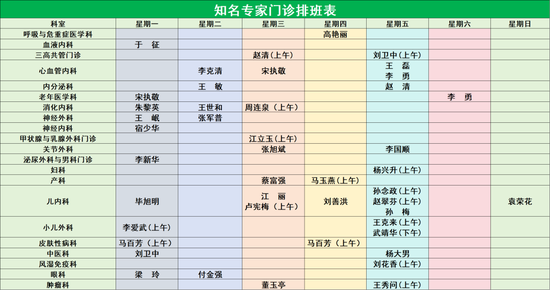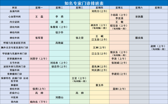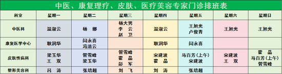 ★说明:如果专家出诊时间有变,以当天实际出诊专家为准。