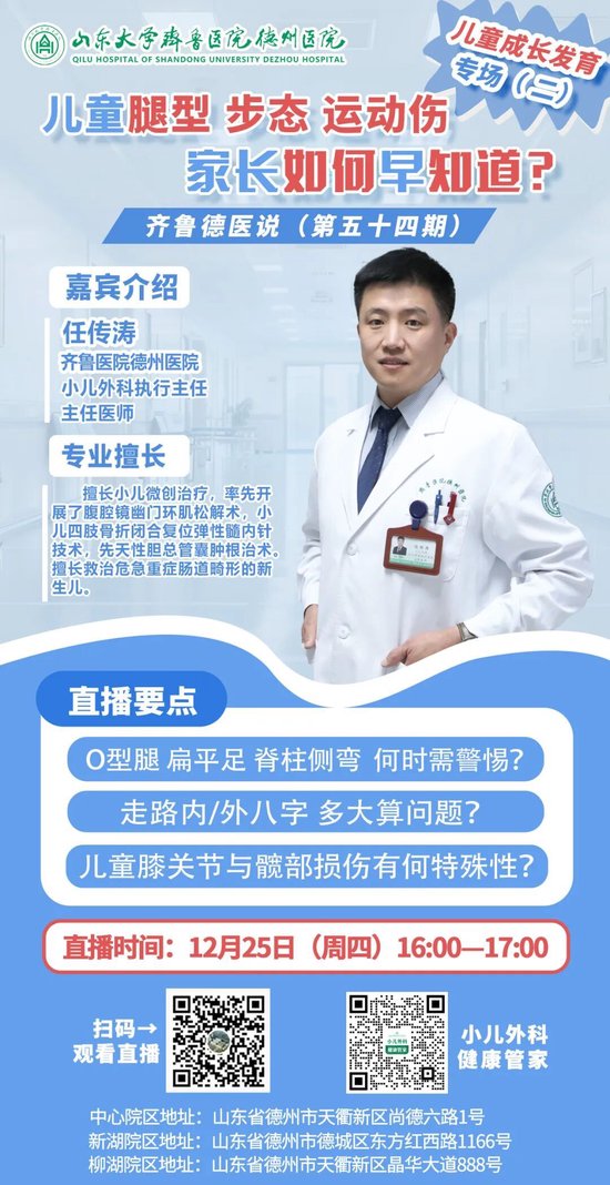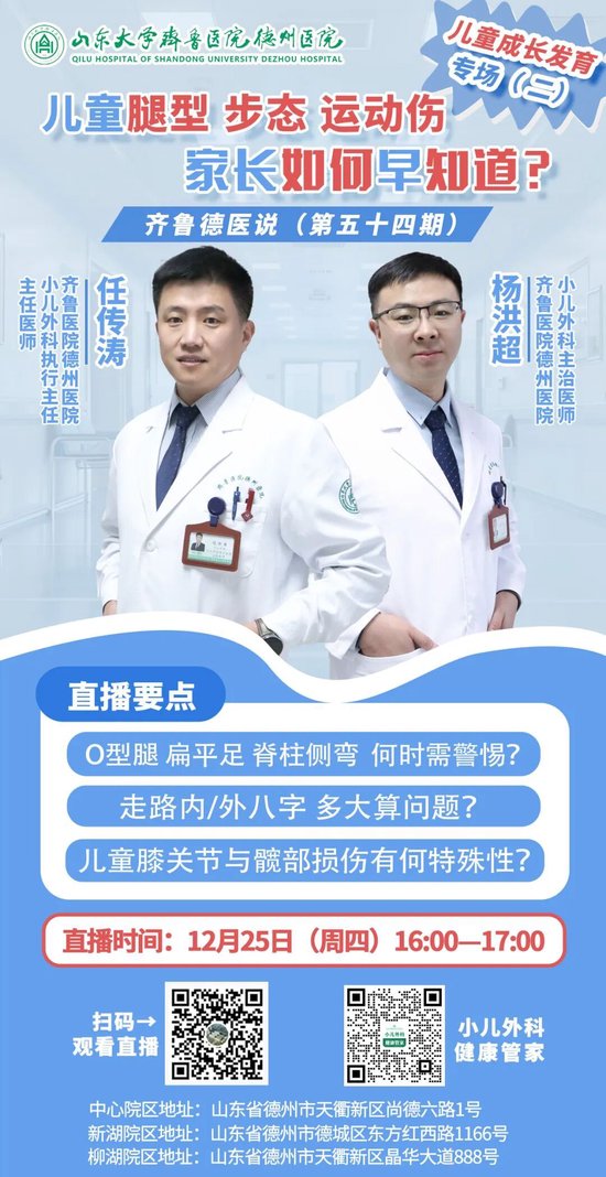 齐鲁医院德州医院直播预告|儿童腿型、步态、运动伤,家长如何早知道?