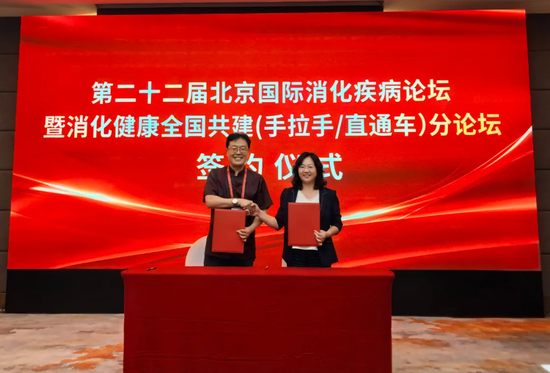 德州市第七人民医院党委副书记、院长庄霞与国家消化系统疾病临床医学研究中心副主任、北京友谊医院副院长李鹏签署消化健康全国共建论坛合作意向书