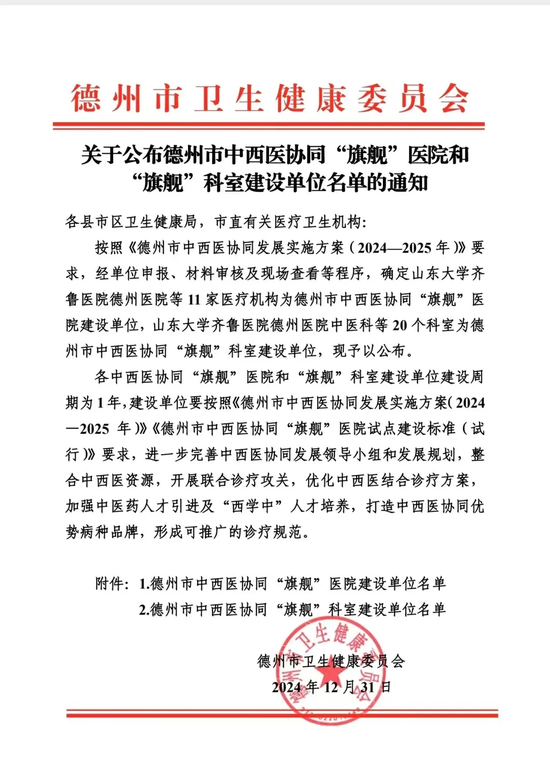德州市第七人民医院入选德州市中西医协同“旗舰”医院建设单位