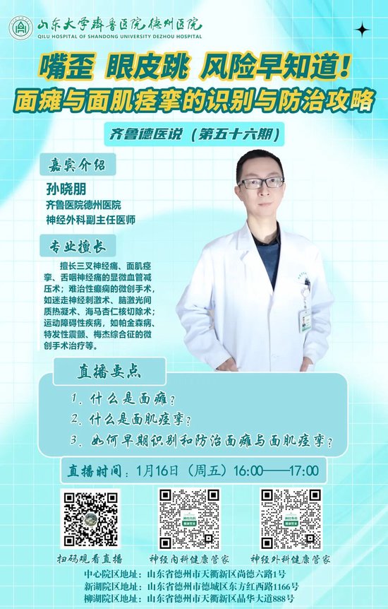 齐鲁医院德州医院直播预告|面瘫与面肌痉挛的识别与防治攻略