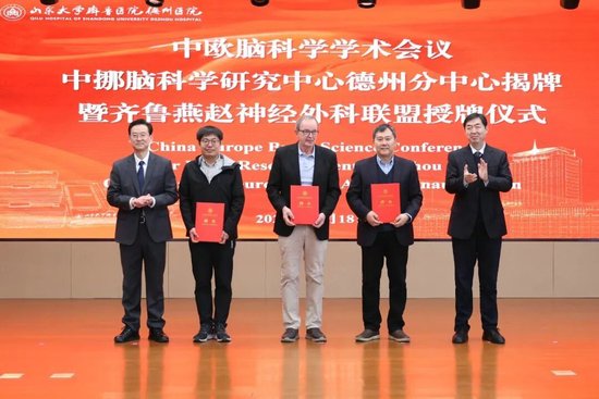 在引才的同时,德州医院注重对外交流与科研赋能。日前,中欧脑科学学术会议暨齐鲁燕赵神经外科联盟授牌仪式在德州医院中心院区举办。会上,“山东省医药卫生重点实验室(建设单位)——神经外科实验室”“中挪脑科学研究中心德州分中心”正式揭牌,标志着医院在科研平台建设、国际交流合作和创新能力提升方面取得新突破。