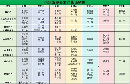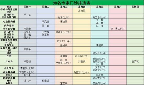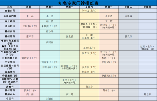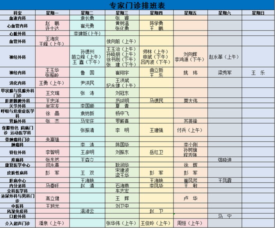 ★说明:如果专家出诊时间有变,以当天实际出诊专家为准。