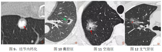 2.空洞征:指结节内部出现直径一般≥5mm的透亮区,多为坏死组织排出后形成。空壁厚薄不均、内壁不光滑时,需警惕恶性可能,一般发生在较大肿瘤中。